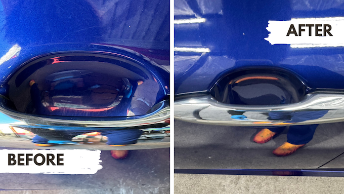 研磨の際に再塗装してある部分があり研磨で傷を落とす際にクリアを剥がしてしまう恐れがありましたので、今回は傷に対してはペーパーとて磨きでアプローチをし全体的に、深い傷はウールバフにて研磨を行い傷消しを行いました。